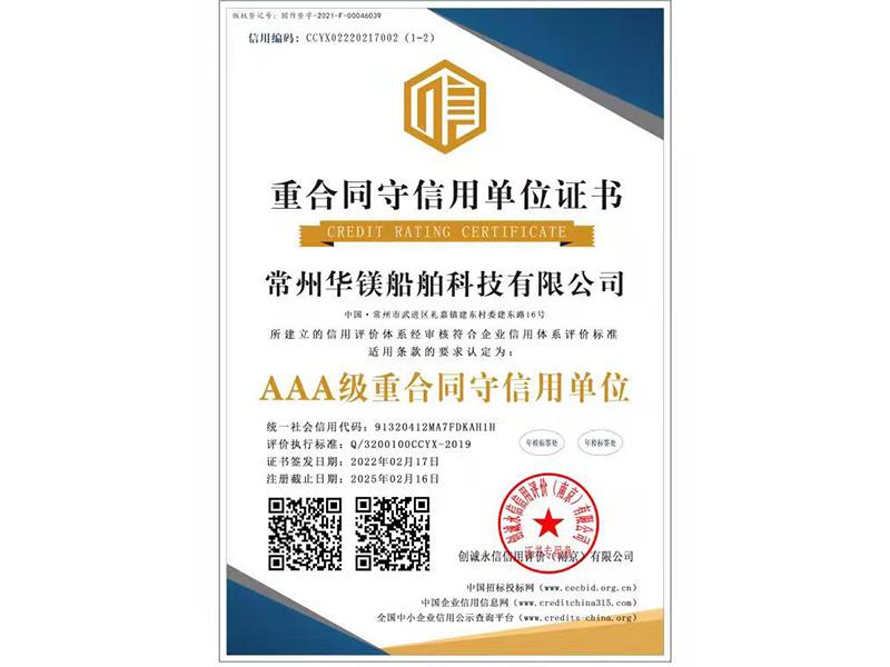 船舶行業(yè)誠信單位證書